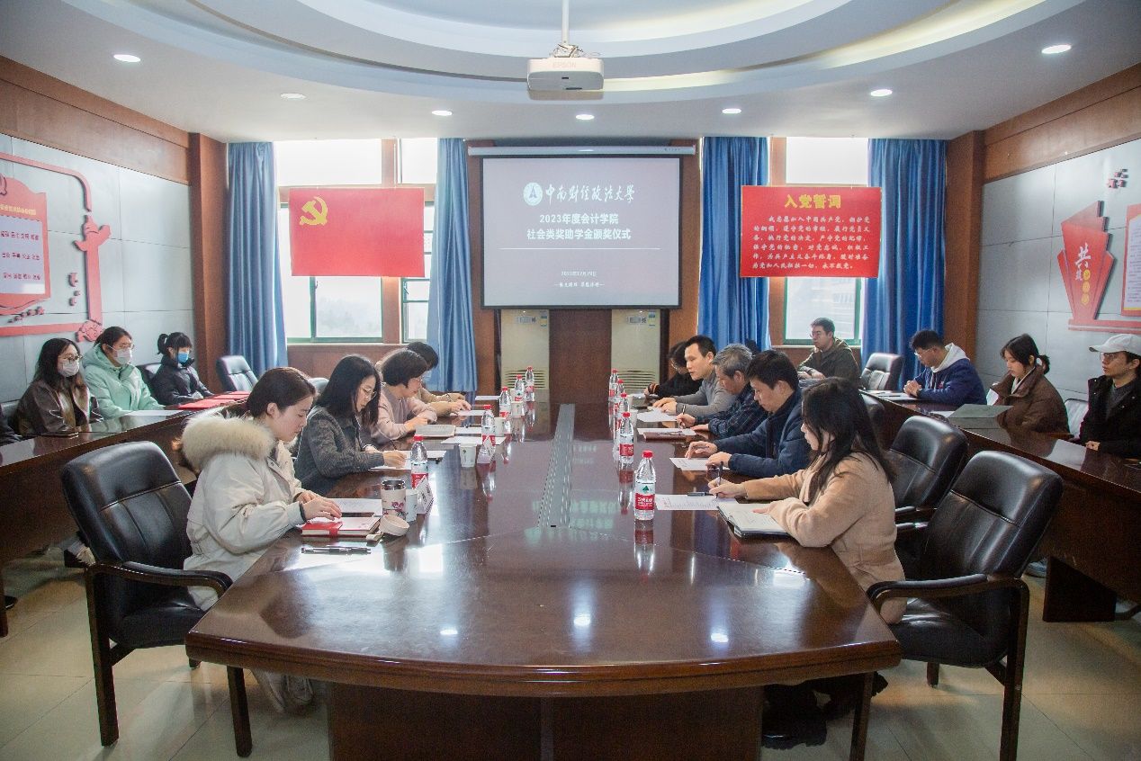 新闻网讯(通讯员 胡牧孜)12月29日,正值2023年最后一个工作日之际,中南财经政法大学会计学院2023年度社会类奖助学金颁奖仪式在文泉楼南306会议室举行。党委学生工作部副部长、心理健康教育咨询中心主任葛明,党委学生工作部学生资助管理中心谢吉老师、潘喆老师,会计学院党委书记周勇,党委副书记兼行政副院长、纪委书记黄波,党委副书记胡桂锬,学院学生工作办公室全体成员和获奖学生代表参加了仪式。颁奖仪式由会计学院党委副书记胡桂锬主持。