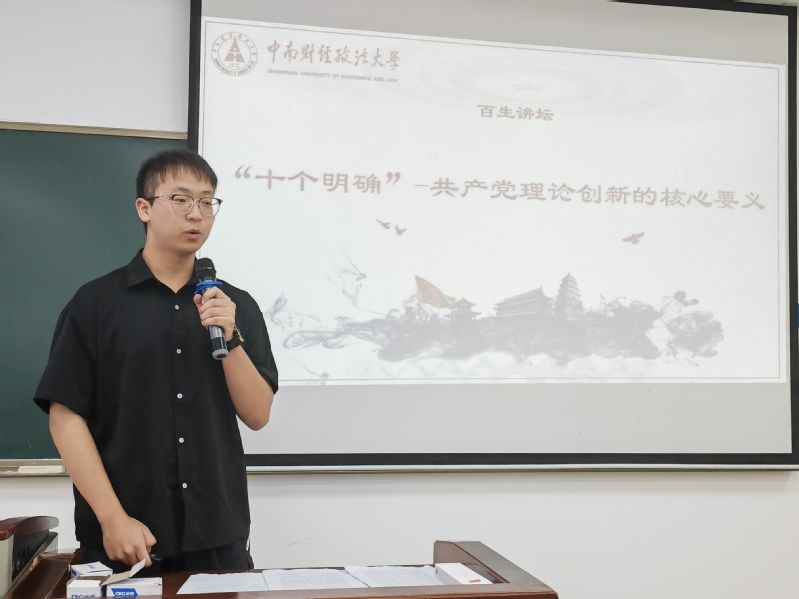主持人宣布本场答辩的评分细则后,十位答辩选手依次上台展示。裴逸凡选手引用习近平总书记给大学生的信呼吁青年在思想领域深耕、传承、发展党的理论和思想;赵思瑶选手以南陈北李建党、兰州大学老教授们将青春融进祖国山河为例,向大家阐述青春奋斗的信念与热血;魏赫选手通过我国国情来解释“十个明确”是我们党在新时代提出的重要指导思想和实践指南,呼吁大家深入学习领会其精神实质和重要意义。他们将党史国情同个人经历紧密相连,热情而自豪地表达对党和国家欣欣向荣的期盼,并立志在奉献中实现个人与社会的统一,展现自身青春风采。