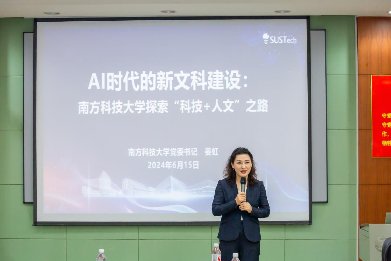姜虹书记还分享了南方科技大学建设新文科的实践与探索。她从理工科大学的新文科、创新型大学的新文科、学院交叉融合的新文科三个方面分享了南科大的建设特色,她表示,南科大将以“科技+人文”的理念持续探索、积极创新,使理工与人文社会科学碰撞新的火花,为建设教育强国、科技强国、人才强国和文化强国贡献高校答卷。