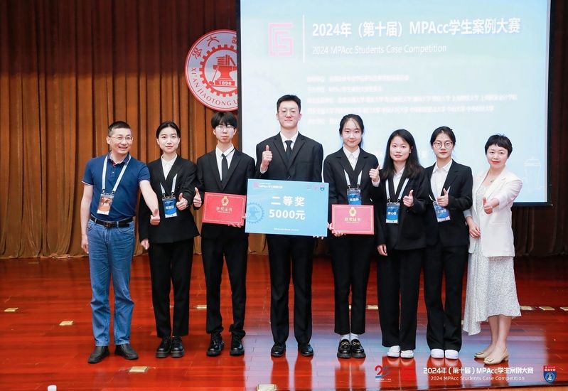 会计学院高度重视本次大赛,在学院张敦力院长和周勇书记的大力支持和会硕中心主任兼副院长王昌锐教授的统筹安排下,学院精心组织,初赛阶段共有2支研究生队伍成功晋级研究生组全国150强,获得参加初赛第二阶段比赛的资格;1支本科生队伍荣获本科生组全国二等奖。其中以2023级MPAcc学生周晋羽为队长的“隆中队”(队员:王泽源、魏荣旋、王诗佳、陈曼婷、唐心语)在王嘉鑫副教授的精心指导下,先后晋级全国30强和全国10强,并最终晋级决赛。经过扎实刻苦的赛前准备、灵活机敏的现场表现,在决赛中荣获全国二等奖,王嘉鑫老师荣获优秀指导教师奖。