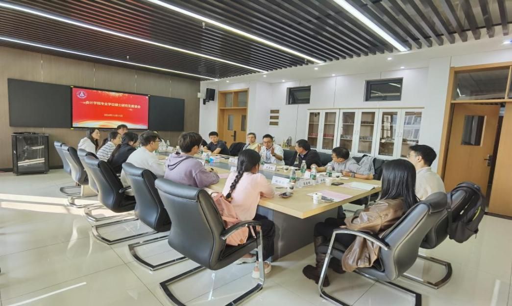 (通讯员:董丽华)为全面了解学院专业学位硕士研究生对全流程培养和个人职业发展的心声,解决专业学位研究生的学习、实践和就业等方面的诉求,促进育人水平高质量发展,2024年11月11日下午,会计学院召开专业学位硕士研究生座谈会。会计学院院长张琦,院党委书记周勇,会硕中心主任兼副院长王昌锐,院党委副书记、纪委书记兼行政副院长黄波,专硕导师组组长宋丽梦、季华,会硕中心办公室全体老师参加了本次座谈会。座谈会由会硕中心主任兼副院长王昌锐主持,来自会计专硕、审计专硕各年级的10名研究生生代表与参会领导、老师进行了充分交流。