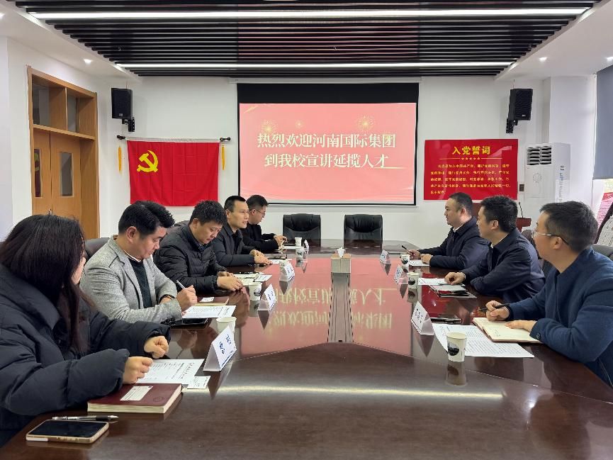 新闻网讯(通讯员:胡牧孜 刘洋)3月4日,河南国际集团到我院宣讲延揽人才,活动在文瀚楼举行。河南国际集团资金财务部部长张晓飞、塞内加尔分公司总经理石高飞、人力资源部经理姜仲阳及院党委副书记、纪委书记兼行政副院长黄波、党委副书记胡桂锬等出席活动,活动由胡桂锬主持。活动通过企业宣讲、座谈交流等形式深化校企协同,共促毕业生高质量就业。